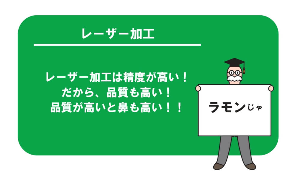 金型による加工や鋸切断による加工と比べて、品質・精度向上が実現できます。