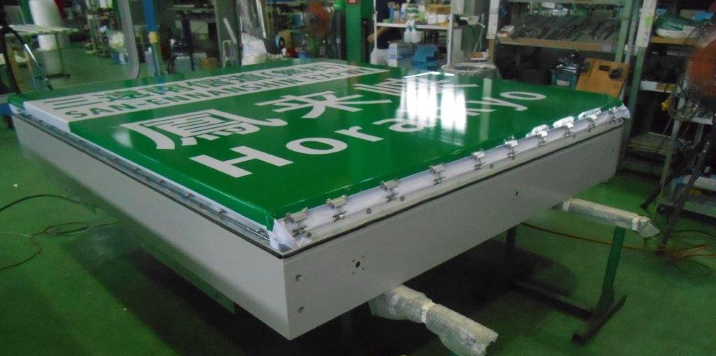 高速道路看板製作の「ノウハウ × 技術」と「オールアルミ製 × 光る(内照性) × 大きいサイズ」という 他社ない特長を活かして大型看板・標識の製作をお受けしています。