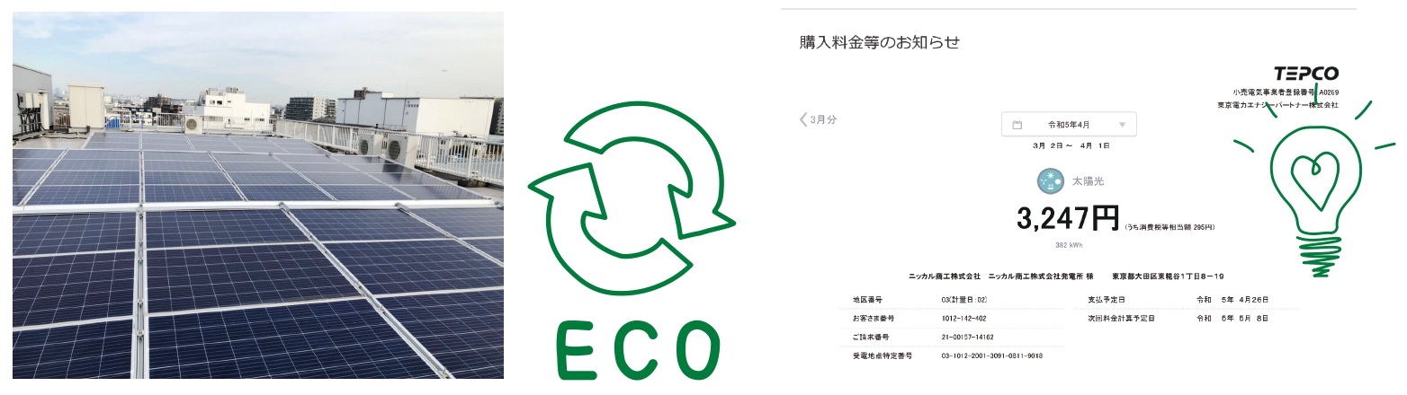 ニッカル商工は、この舞台を見守りつつ、今後もSDGsに貢献する取り組みを 進めることを決意。城南センターの屋上は今日も、太陽の恵みを受けています。